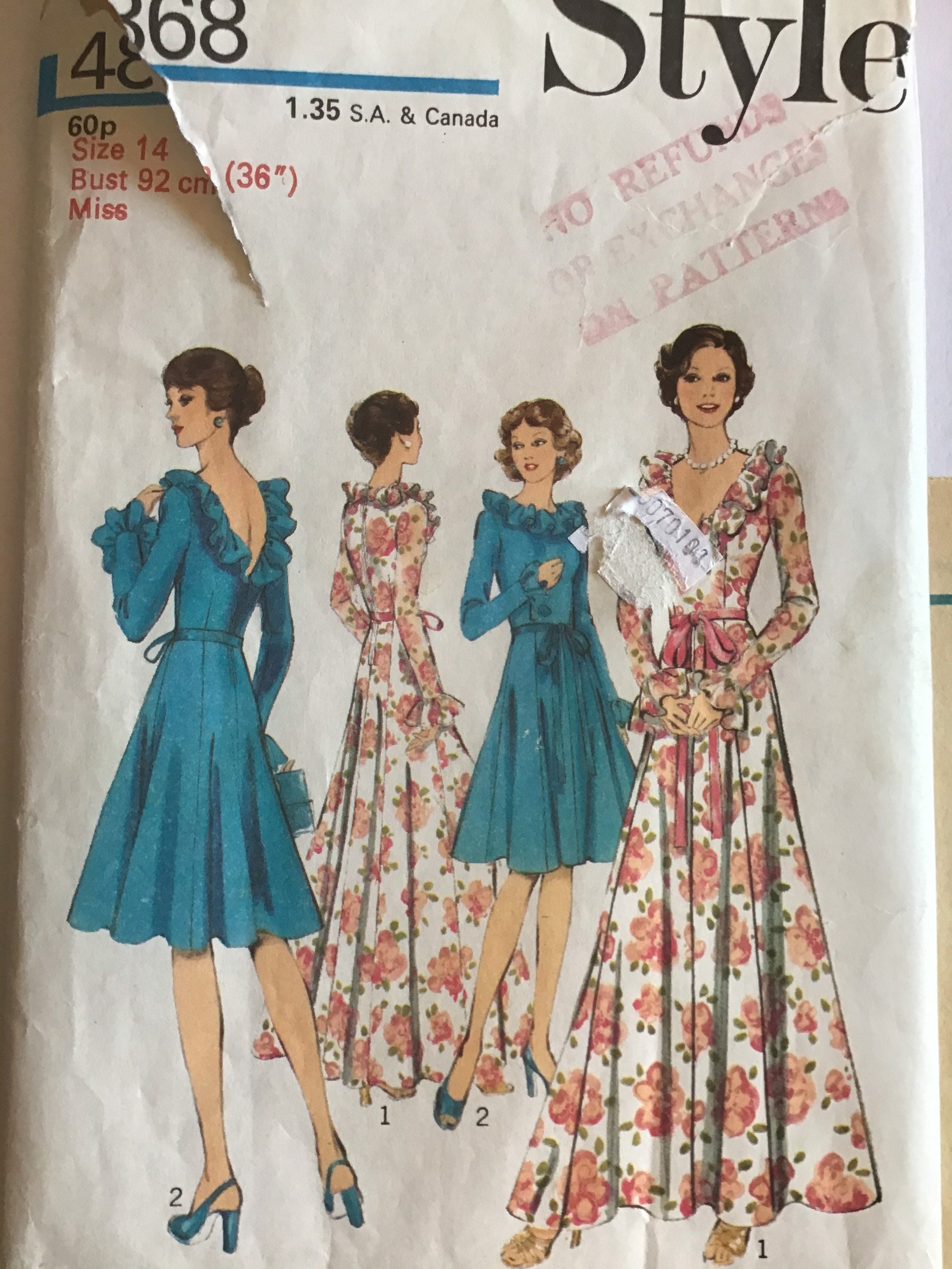 Vintage 70s Sewing Pattern Style 4868 Womens Dress Has Etsy Uk
